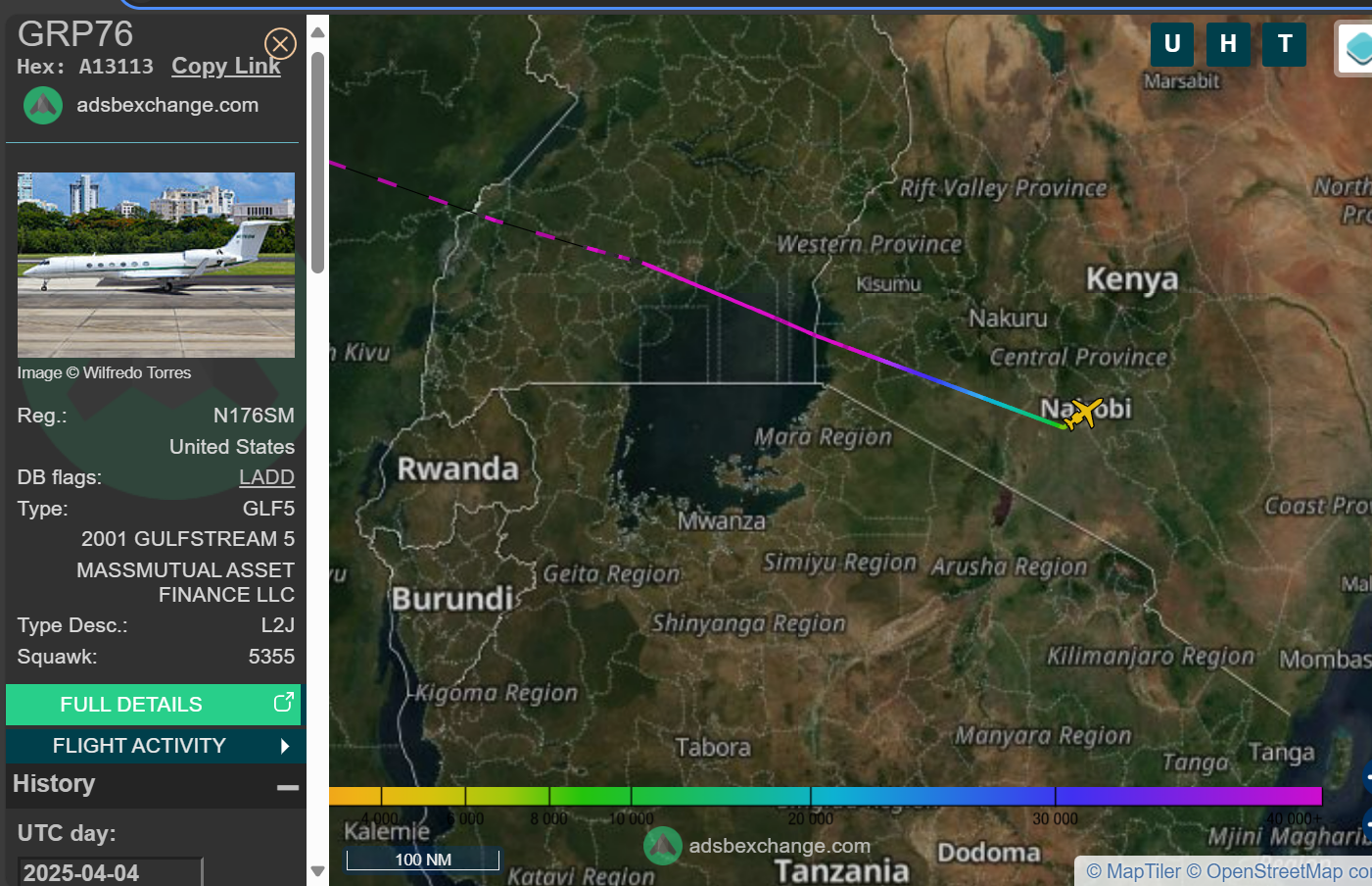 Around 11 p.m. on April 2, an ATS jet left Mesa headed east. It stopped at the small Fort Worth airport, taking off again at about 3:30 a.m. local time. After brief stops in San Juan and Senegal, it landed in Nairobi on at 5 a.m. on April 4th.