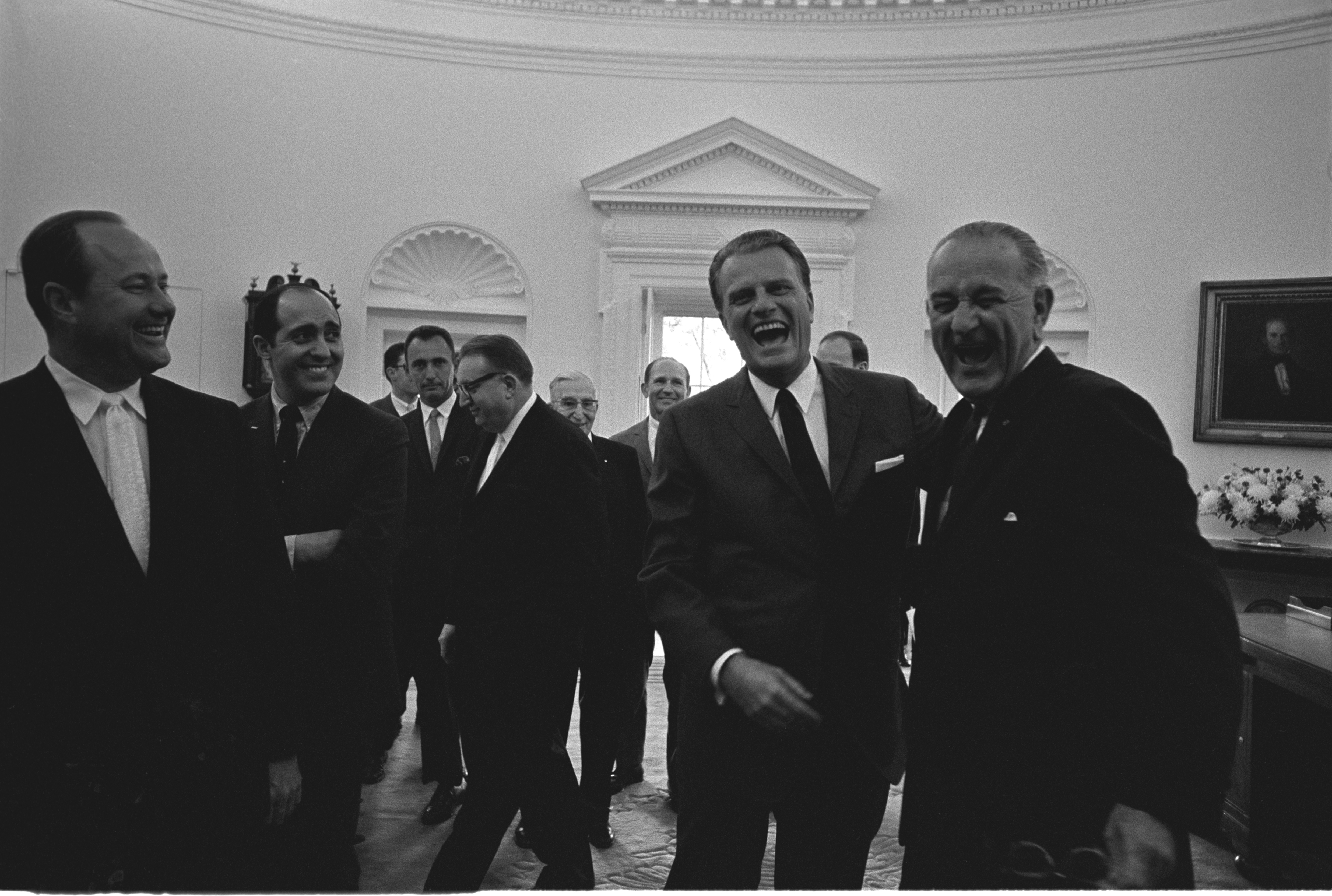 Sitting for a photo after a tense meeting with an appointee? Laugh.